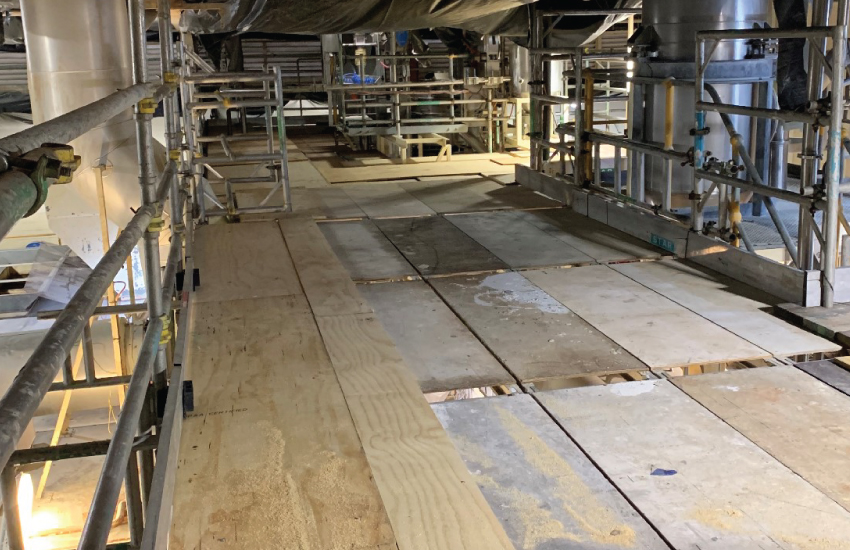 A fast-tracked project which included the installation of four truckloads of aluminium scaffolding within 48 hours, in one weekend. The client required the plant to stay fully operational during the renovation. The scaffolding design was customised to ensure the customer retained unfettered access to the area below the scaffold at all times.